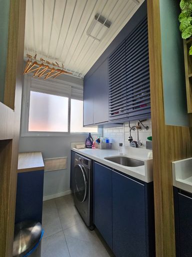 🪣Lavanderia fechada e com ótimos armários, cesto duplo para roupas, varal de qualidade e lava e seca.