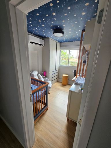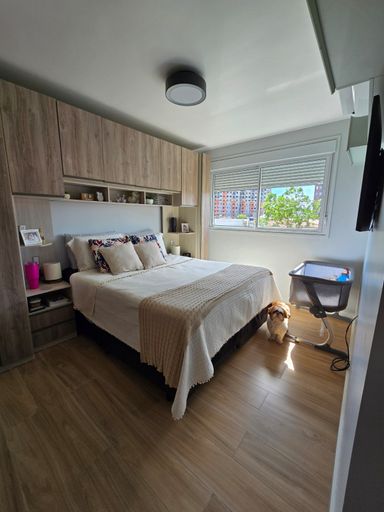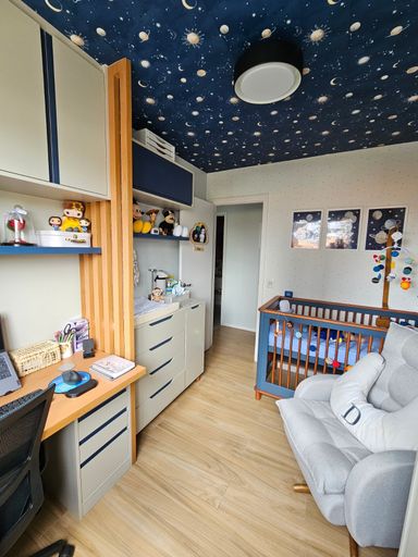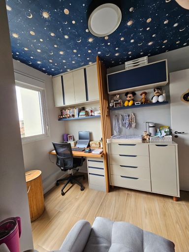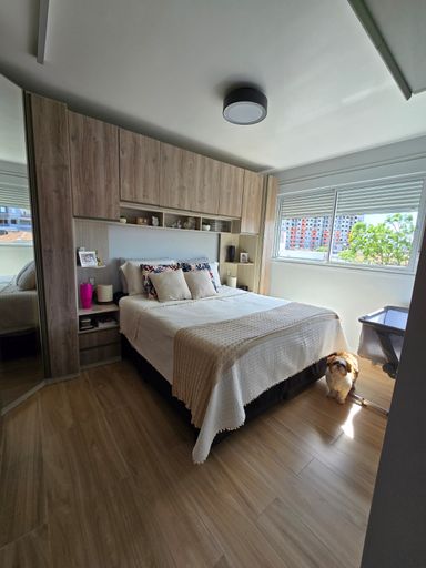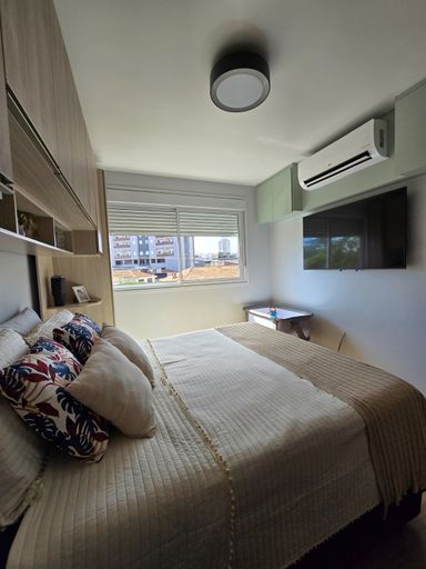 🛏️ 2 quartos, sendo 1 suíte com espaço para cama queen, ambos equipados com armários planejados e modulares de ótima qualidade.