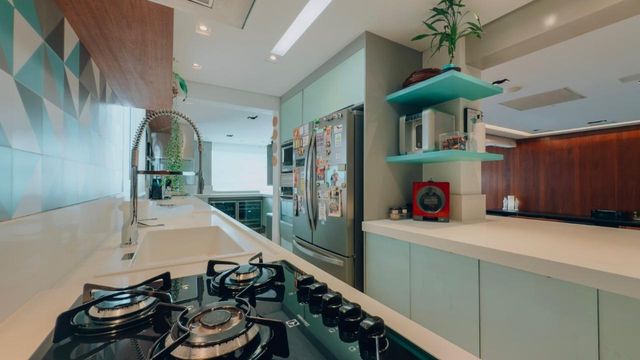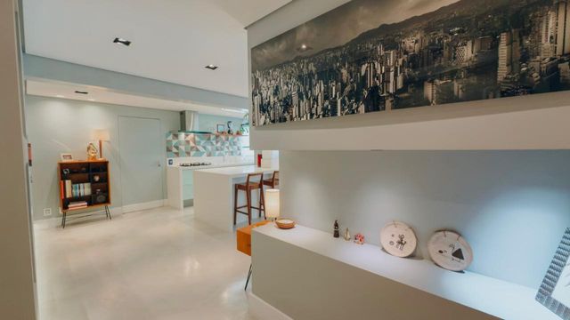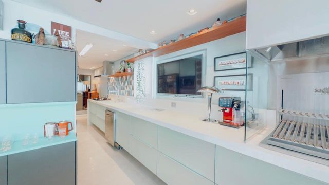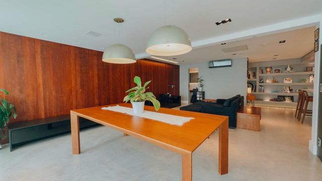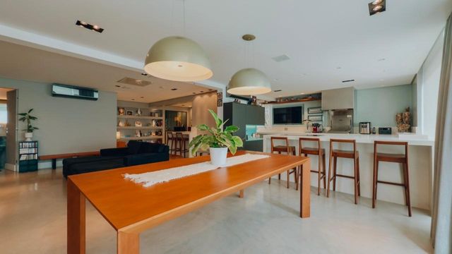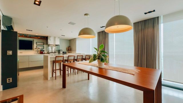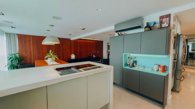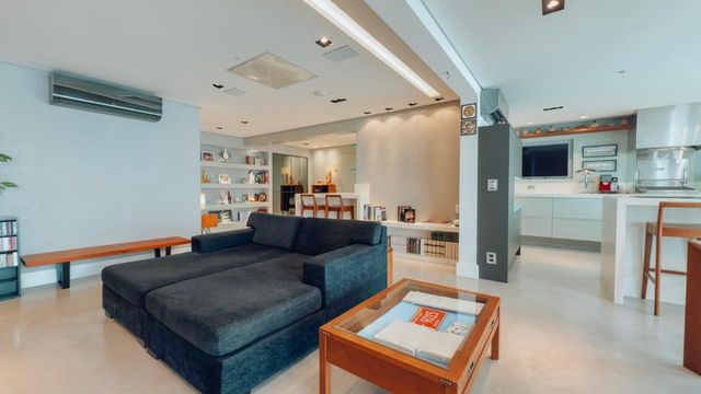 Ampla sala integrada à varanda gourmet e à cozinha, promovendo maior convivência e fluidez nos ambientes