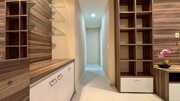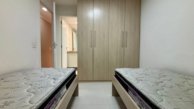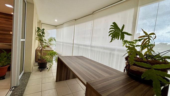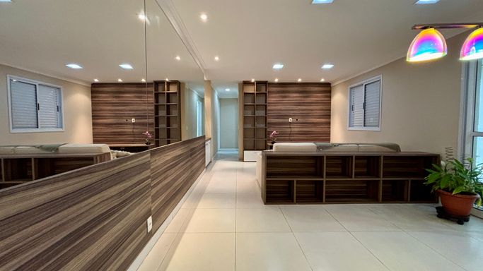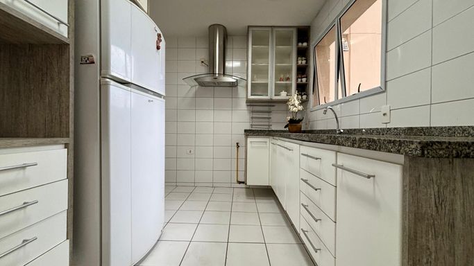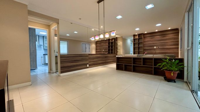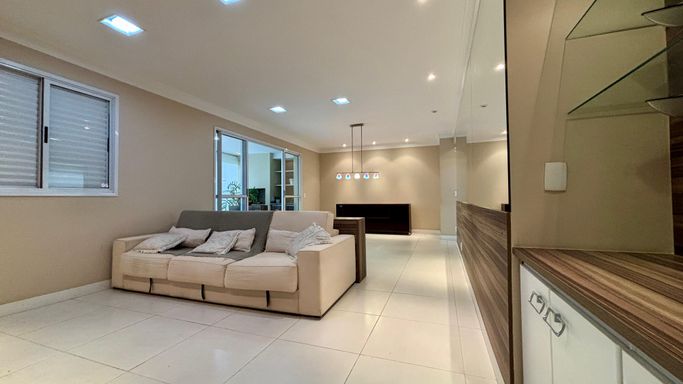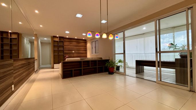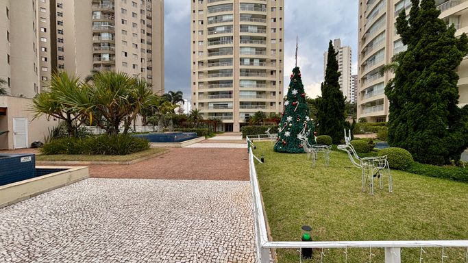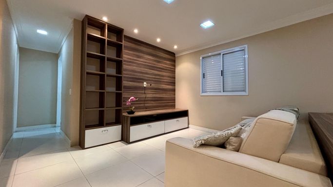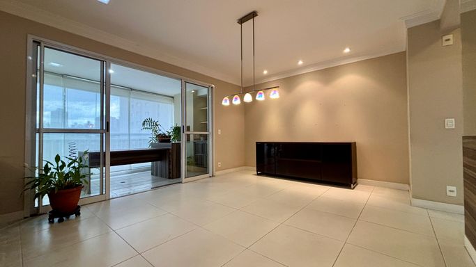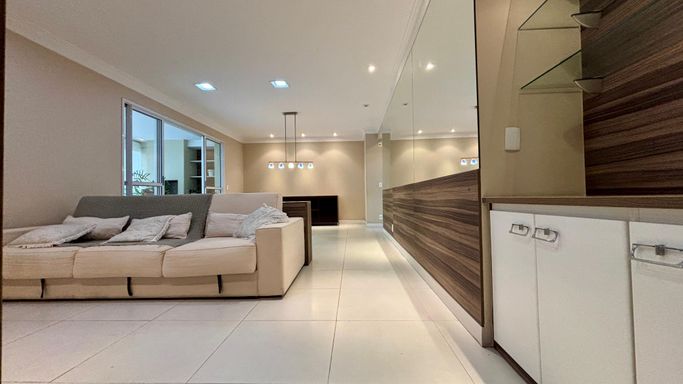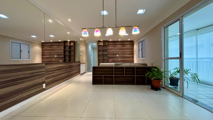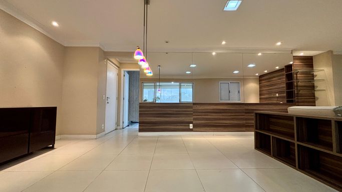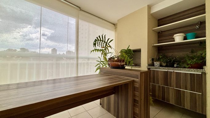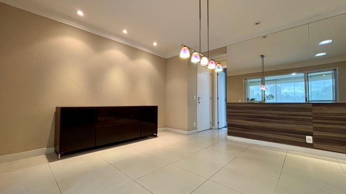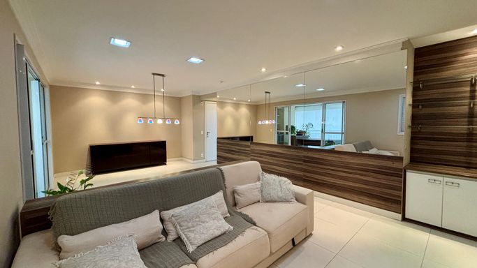 Apartamento com 2 quartos, sendo 2 suítes, e um 3º quarto reversível. Conta ainda com lavabo e banheiro de serviço. Sala ampliada, varanda gourmet, cozinha com armários planejados e 2 vagas de garagem.