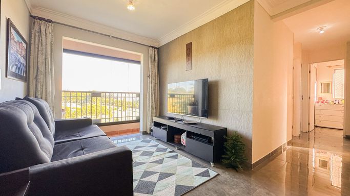 O apartamento tem 62m2, mas com uma planta muito bem distribuída e espaçosa, perfeito para família com até 2 filhos pequenos.