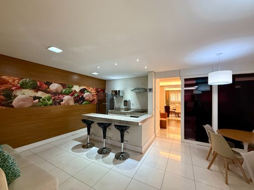 Planta Funcional de 76,50m²: Com 2 dormitórios (sendo 1 Suíte), a distribuição é ideal para integração de ambientes.