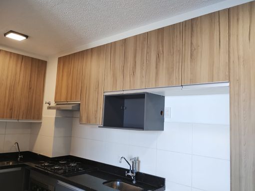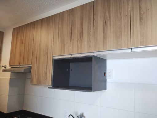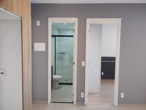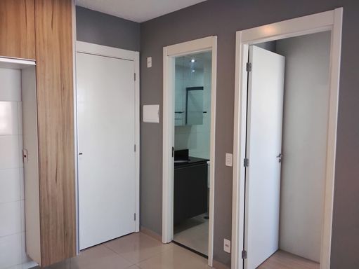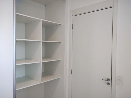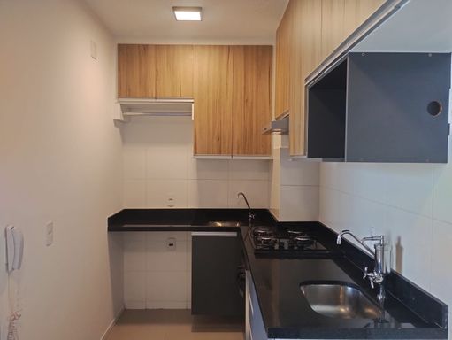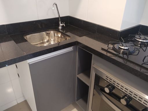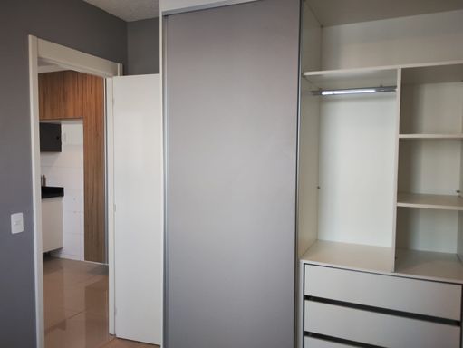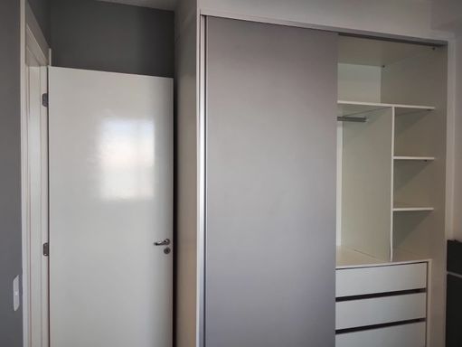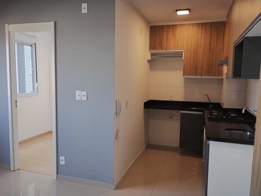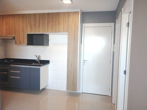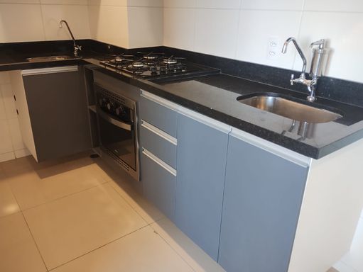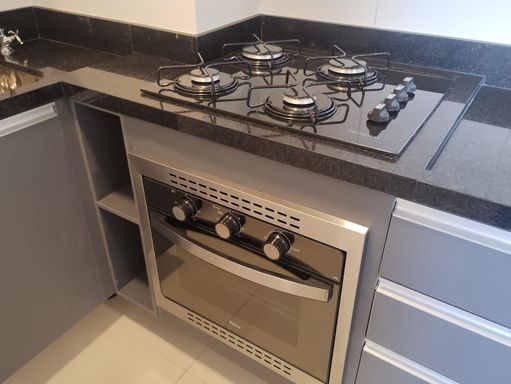 São 2 quartos com planejados e ambientes integrados como sala, cozinha e área de serviço equipados, banheiro completo e sem vaga. Pisos em porcelanato e laminado, telas de proteção novas nas janelas, cooktop Mondial 4 bocas, forno elétrico e pintura recente em todo o apê.