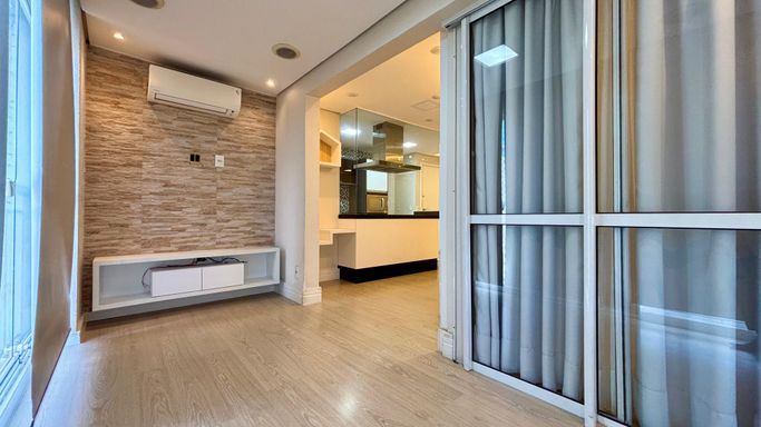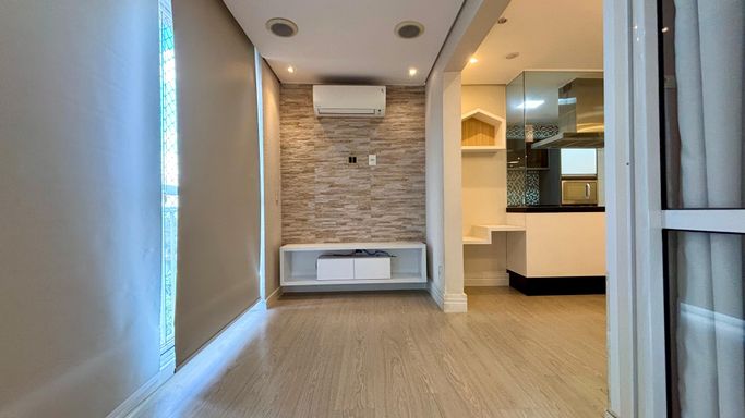 Com 65m² de área útil, o imóvel foi cuidadosamente configurado para oferecer funcionalidade e bem-estar. Conta com 2 dormitórios, sendo 1 suíte, banheiro social, sala de estar/jantar integrada à varanda, cozinha planejada e área de serviço, tudo muito bem distribuído em um layout moderno e acolhedor.