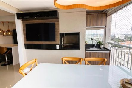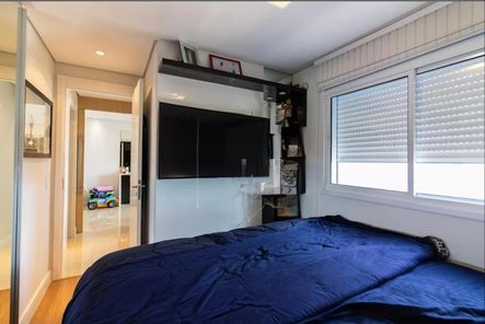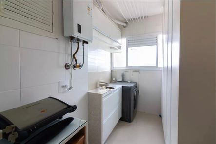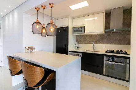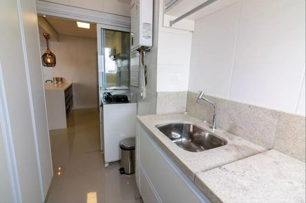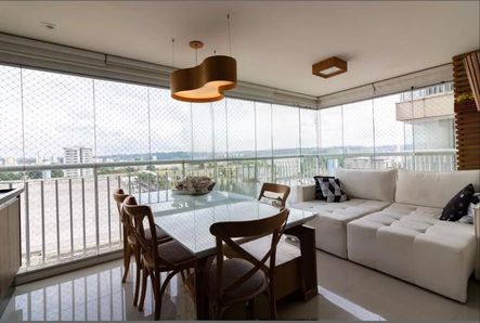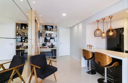 Apartamento em Santo Amaro para venda ou locação com 65m, 2 quartos, moveis planejados em todos os ambientes com churrasqueira na varanda, fechada com vidro e integrada a sala com uma bela vista aberta.
