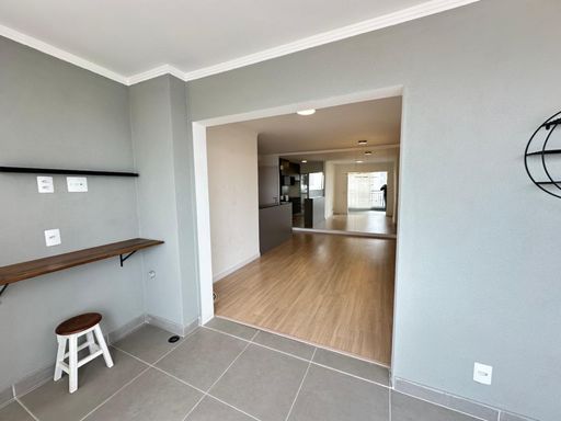 A sala ampla, integrada à varanda, é perfeita para receber amigos e familiares, enquanto a cozinha moderna e bem equipada facilita o dia a dia com praticidade.