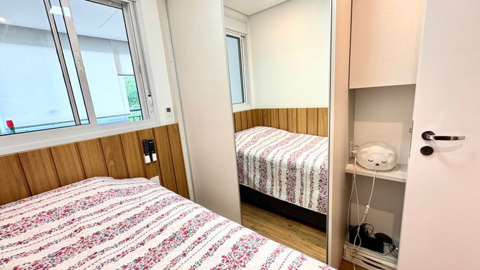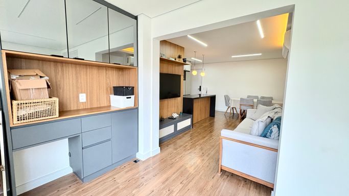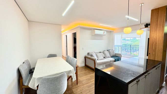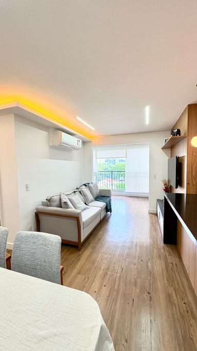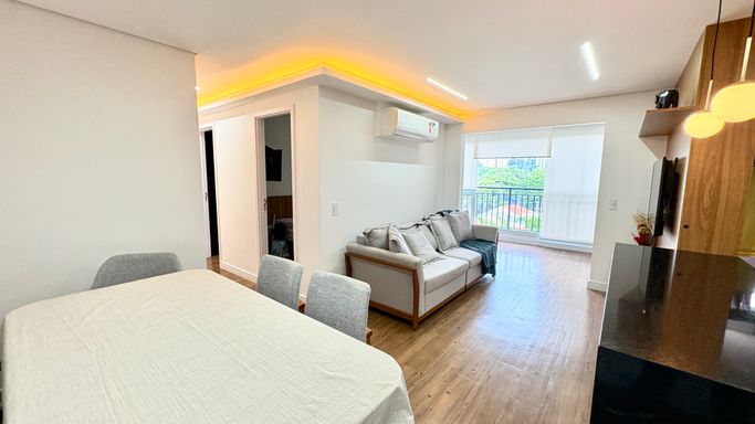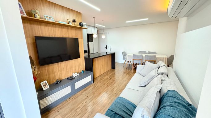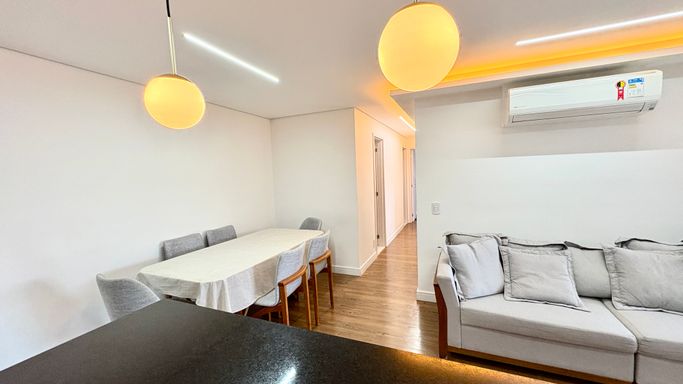 Acabamento de primeira qualidade em todo o apartamento, ar condicionado em todos os ambientes e 2 vagas!