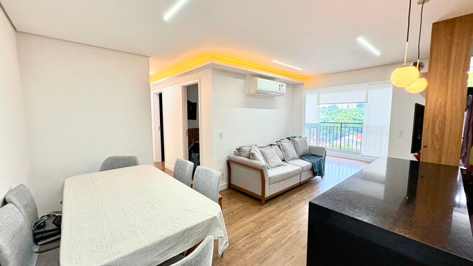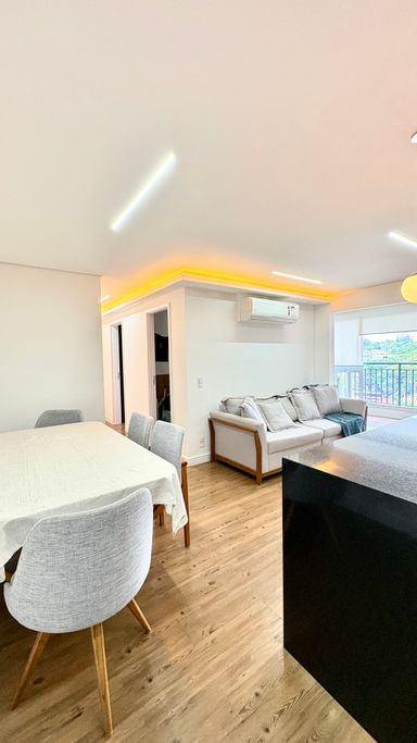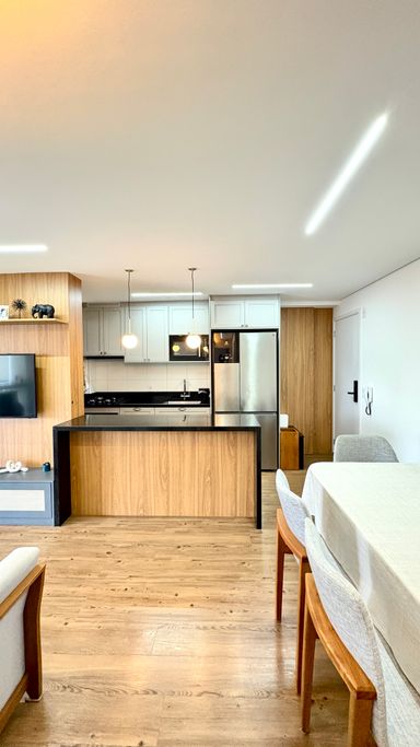 🍽️ Sala de jantar com mesa para 6 lugares, integrada a sala de estar e cozinha aberta.