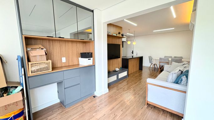 Lindo Apartamento à venda no Alto da Boa Vista com 84m2, com 3 quartos, sendo 1 suíte, lavabo e sala com 2 ambientes, cozinha aberta com integração com a sala e a lavanderia, sacada fechada com vidro e planejados em todos os ambientes.