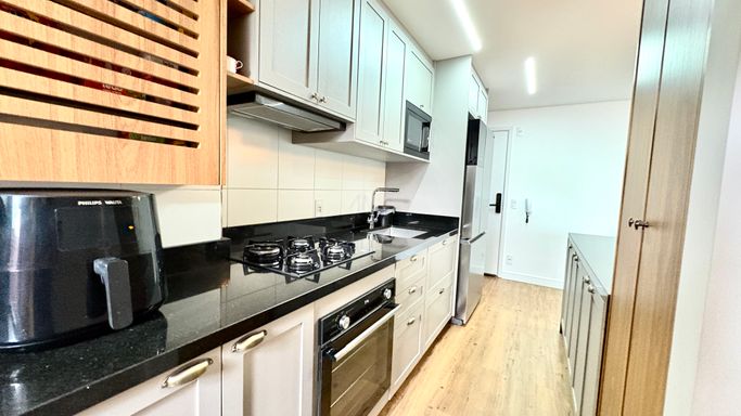 🫖 Cozinha americana com armários planejados, conectando todos os ambientes sociais do imóvel.