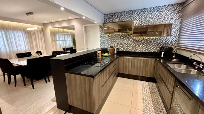 Com 3 dormitórios, sendo suítes, 4 banheiros e 2 vagas de garagem, o imóvel proporciona um espaço generoso para toda a família. Com planejados fixos, forno e fogão, está pronto para morar, ideal para quem busca uma mudança sem preocupações.