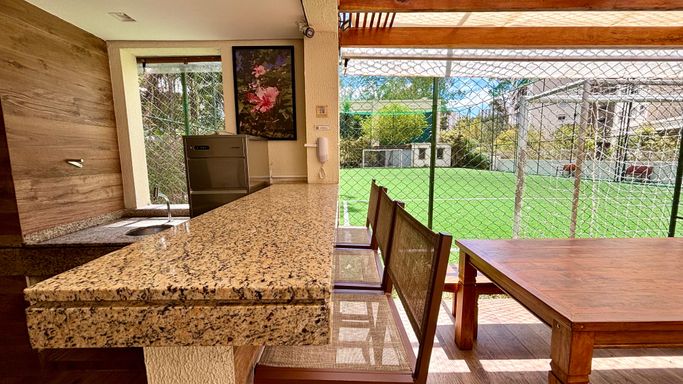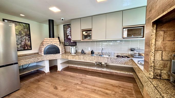Entre os diferenciais, destaca-se a área com churrasqueira, perfeita para receber amigos e familiares com conforto e privacidade.