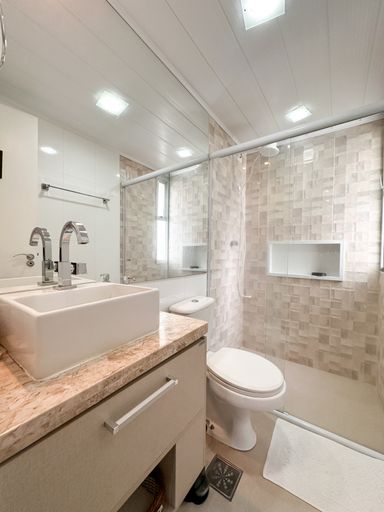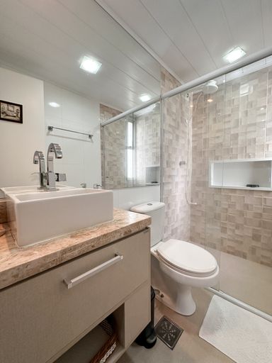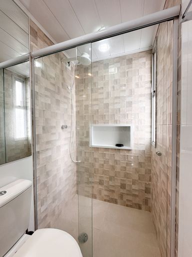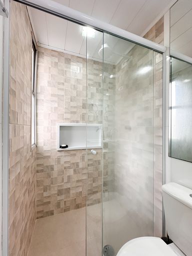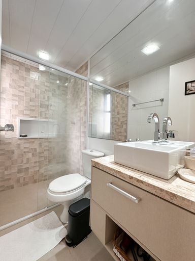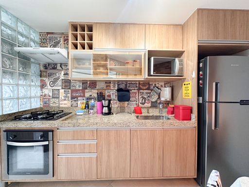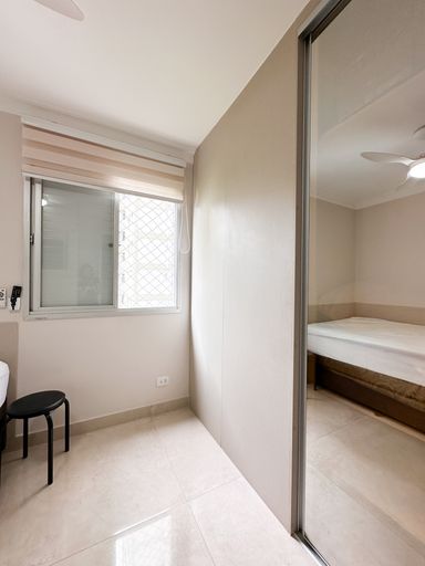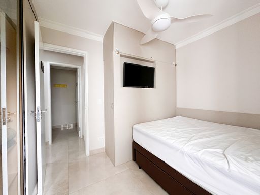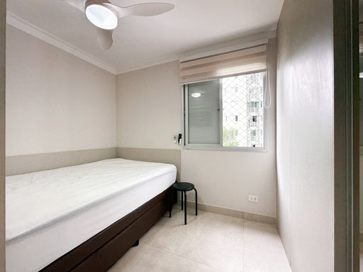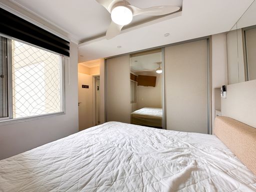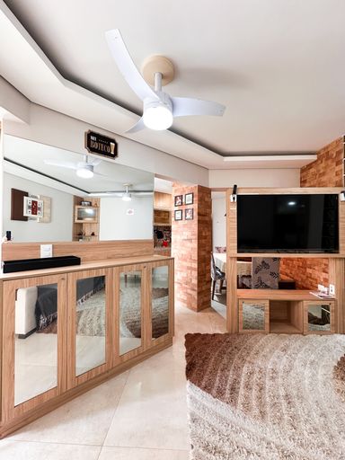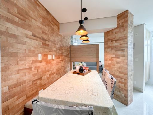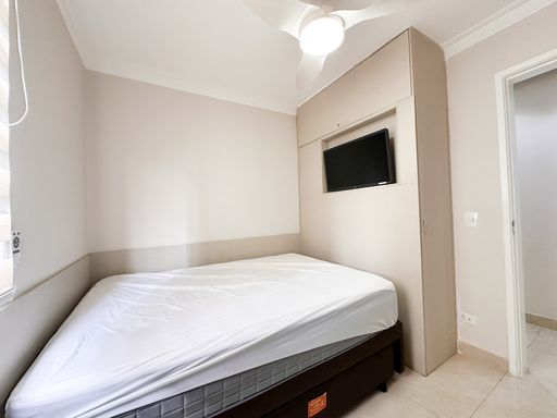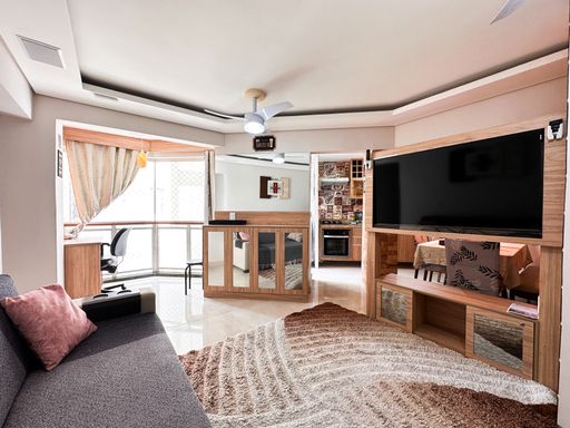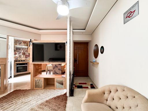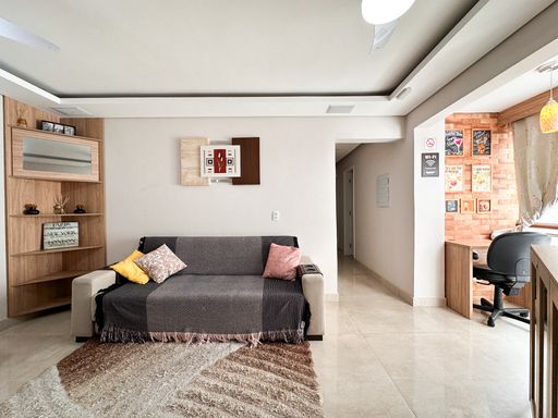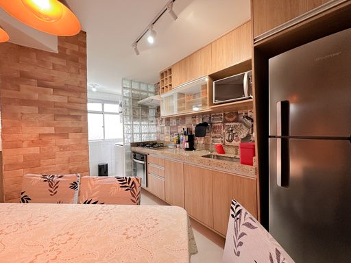 Todo reformado com sala integrada, móveis planejados por todo o apartamento, piso em porcelanato, banheiros reformados com box blindex, armários e espelhos.