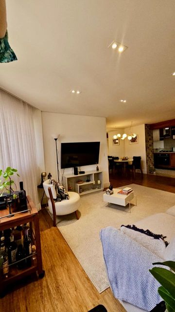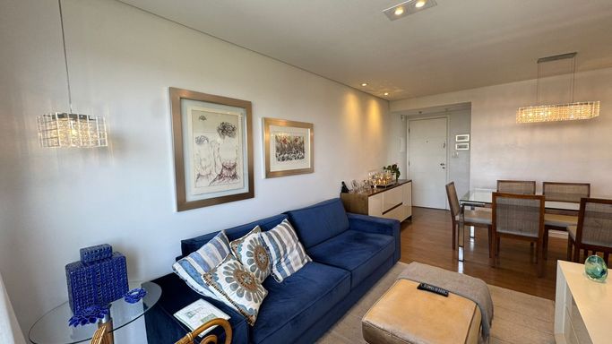 Sala ampla com integração à sacada, que foi ampliada e incorporada ao ambiente, proporcionando mais espaço e luminosidade;