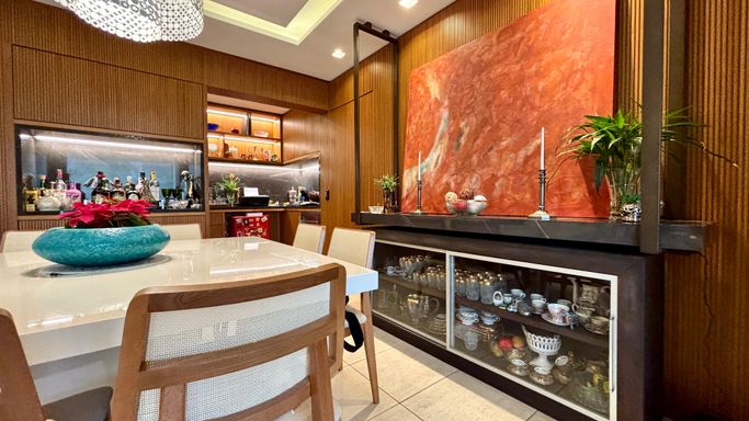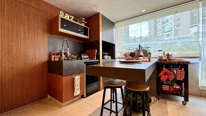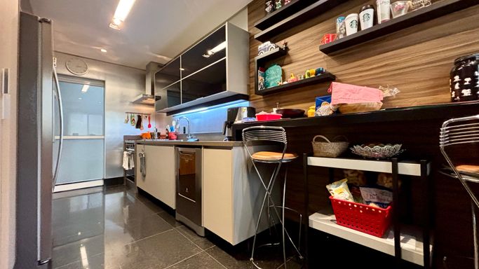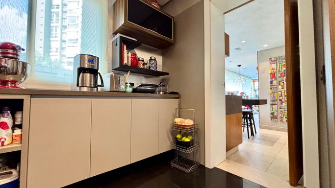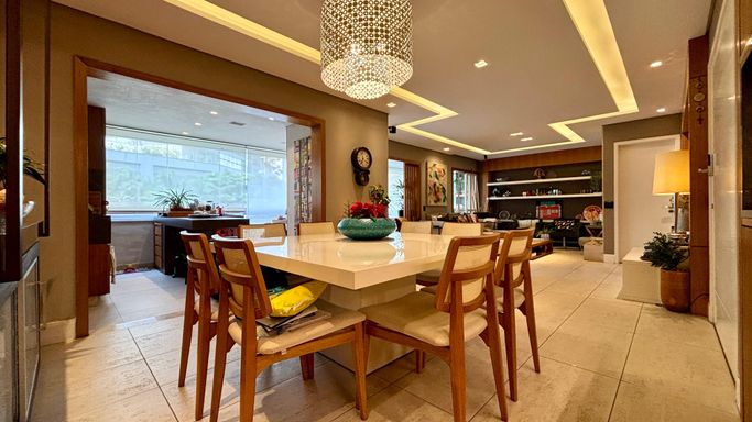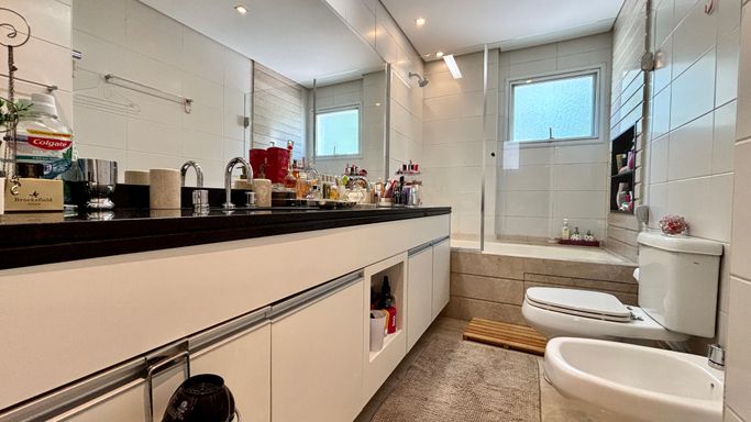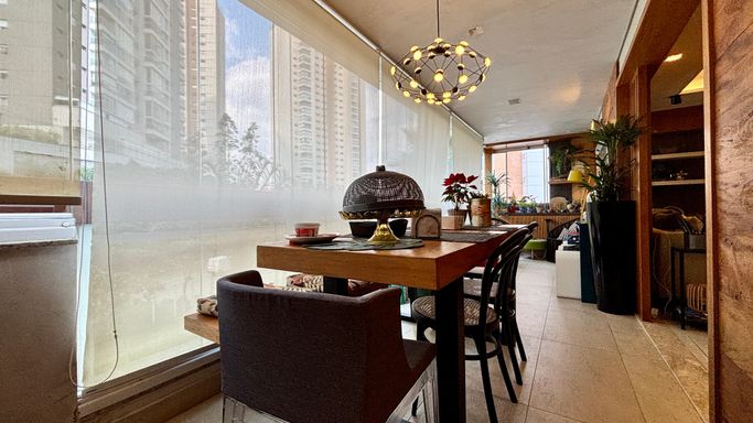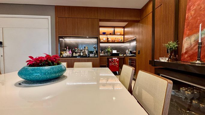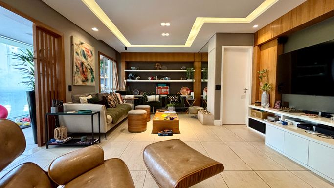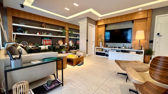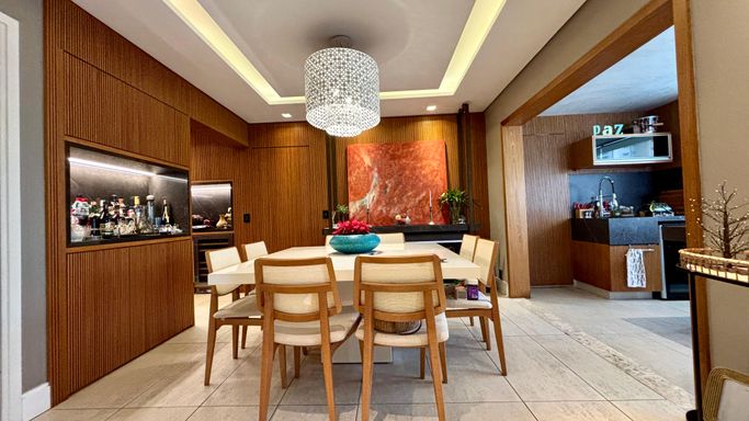 São 3 dormitórios, todos suítes, que garantem privacidade e conforto para toda a família, além de 2 amplas salas integradas, perfeitas para receber amigos e familiares com elegância. O apartamento conta com 4 banheiros modernos, bem ventilados e funcionais, e 3 vagas de garagem, oferecendo total comodidade e segurança.