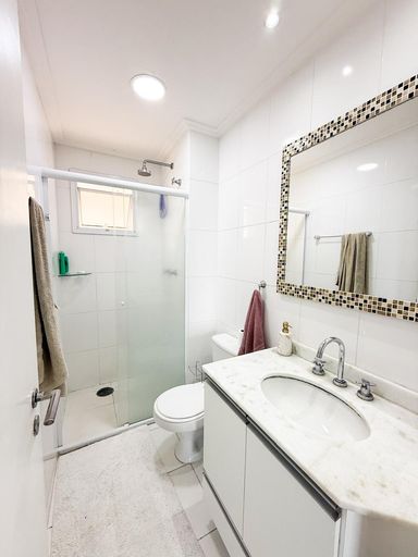Você terá acesso ao lazer completo do condomínio, com piscina coberta e aquecida, salão de beleza e espaço para os pets, inclusive com sala para banho e 2 vagas de garagem.