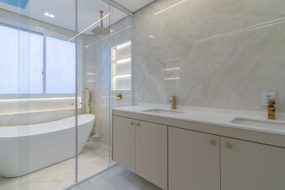 4 quartos com suítes, sendo uma suíte master com closet pro homem e mulher