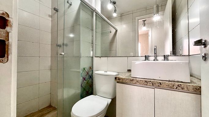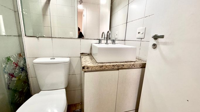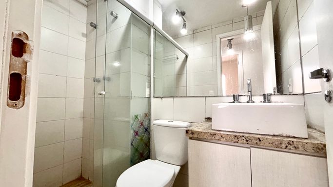Praticidade para o seu dia a dia em um belo condomínio com lazer completo, uma vaga e andar alto.