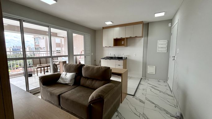 Venha desfrutar de um apartamento completo com churrasqueira na varanda, sala de estar e jantar com acesso aberto para a cozinha. A varanda gourmet com churrasqueira a carvão e ao lado da linha Lilás do metrô na estação Brooklin.