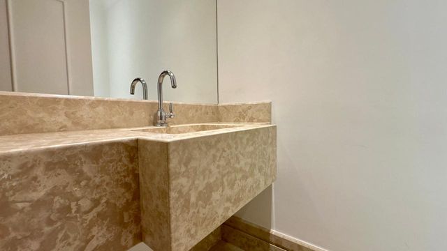 O primeiro piso oferece um living amplo para três ambientes, integrado a uma elegante sala de Home Theater e um lavabo, criando uma área social sofisticada e perfeita para receber. A cozinha espaçosa, totalmente planejada, conecta-se à área de serviço com dormitório e banheiro para funcionário, proporcionando funcionalidade e praticidade no dia a dia.
