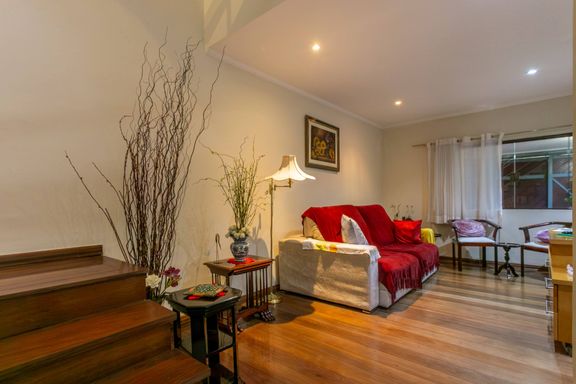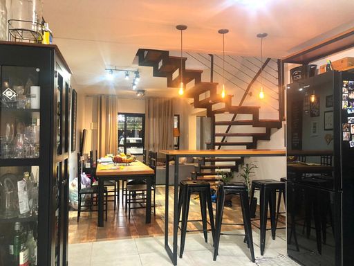 Linda casa Duplex de condomínio à venda com 3 quartos, sendo 1 suíte, sala ampla com ar condicionado e cozinha integrada com a lavanderia.