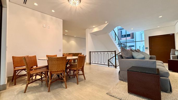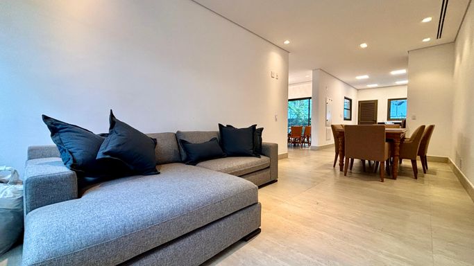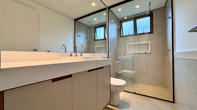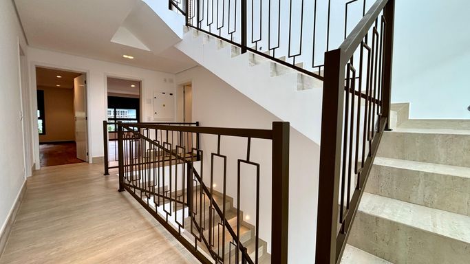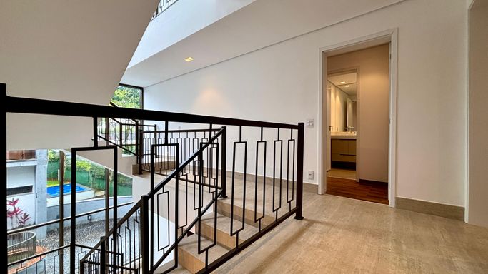 Localizada em condomínio fechado na Rua das Barcas, esta residência de alto padrão no Alto da Boa Vista traduz com perfeição o conceito contemporâneo de morar bem, unindo sofisticação, conforto e integração absoluta com a natureza. A casa, semimobiliada, apresenta quatro suítes amplas, todas equipadas com ar-condicionado, móveis planejados de primeira linha e janelas generosas que proporcionam abundante iluminação natural, valorizando cada ambiente com leveza e bem-estar. A área social é composta por uma sala com três ambientes integrados, marcada por amplas aberturas envidraçadas que oferecem vista privilegiada para o verde ao redor, criando uma atmosfera acolhedora e elegante. A escada, de design pontual e refinado, acrescenta charme e personalidade ao projeto arquitetônico.