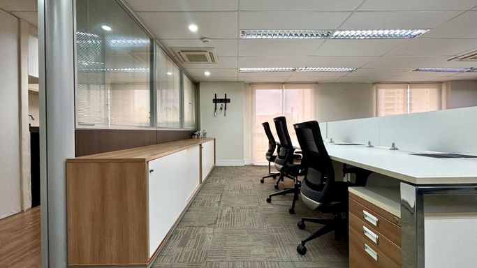 Este Conjunto comercial conta com 4 ambientes me dê limitados e com toda funcionalidade possível, está configurado com uma sala operacional com 14 estações de trabalho para o maior conforto de seus colaboradores, além de duas estações de trabalho gerência neste mesmo espaço.