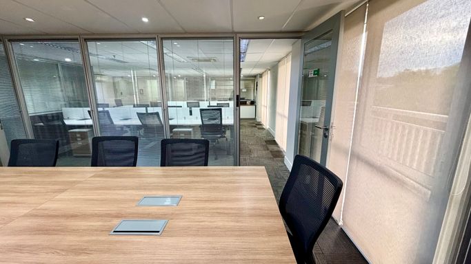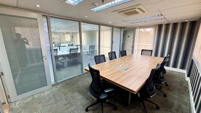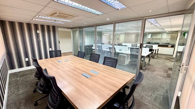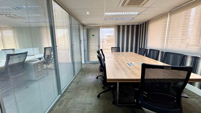 Em paralelo, conta com uma sala de reunião reservada e com privacidade para 8 pessoas, com acesso exclusivo em paralelo à sala operacional, ideal para realizações de reuniões em que precisarão de privacidade e sigilo dos clientes que precisarem.