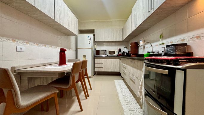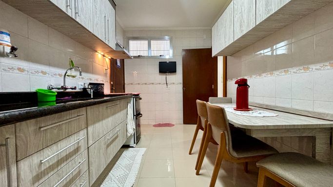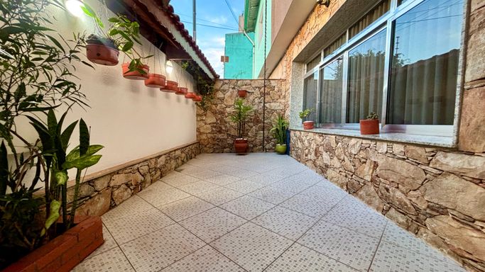 São 3 quartos espaçosos, sala ampla, cozinha e área de serviço equipados, 2 banheiros, quintal, 2 vagas com portão eletrônico e pedestre.