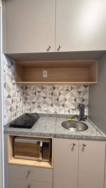 Studio para locação com 25m, mobiliado com ar condicionado e armários planejados, completamente montado para a sua comodidade em uma ótima localização para facilitar o seu dia a dia!